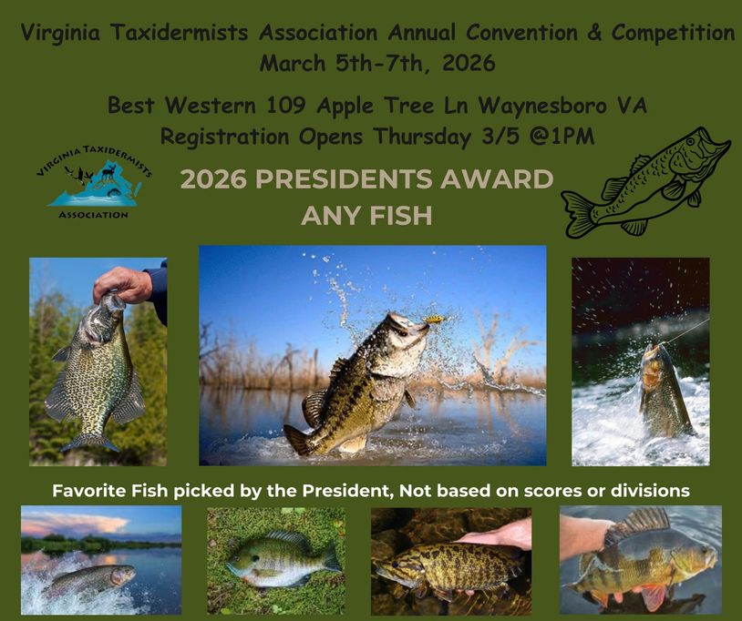 This year the President’s Award will go to any Fish mount of any division. The President will choose the winner and it is not based on division or score